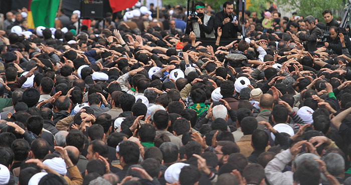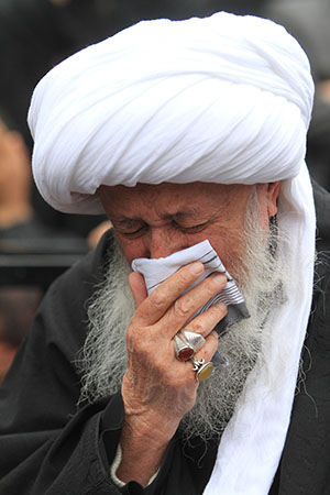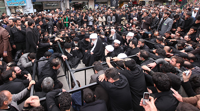 حرکت هيأت عزاداری آية الله وحيد خراسانی در روز شهادت حضرت فاطمه زهرا (س) + عکس