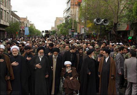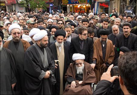 حرکت هيأت عزاداری آية الله وحيد خراسانی در روز شهادت حضرت فاطمه زهرا (س) + عکس
