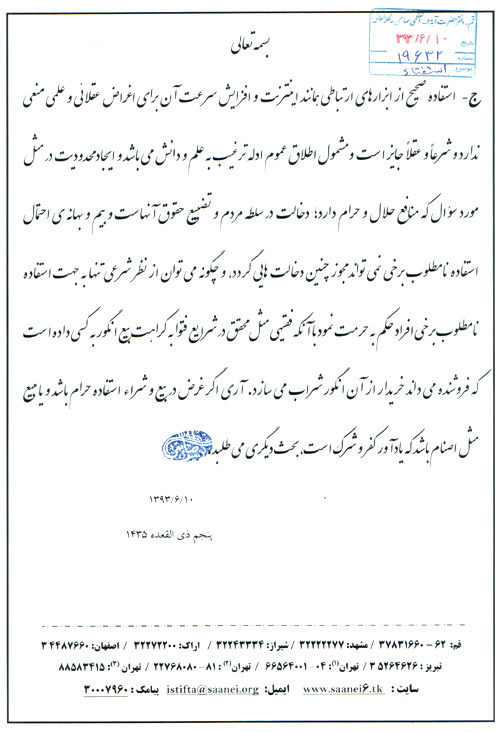پاسخ حضرت آیت الله صانعی به پرسش در مورد افزایش سرعت اینترنت و جلوگیری از اتلاف وقت